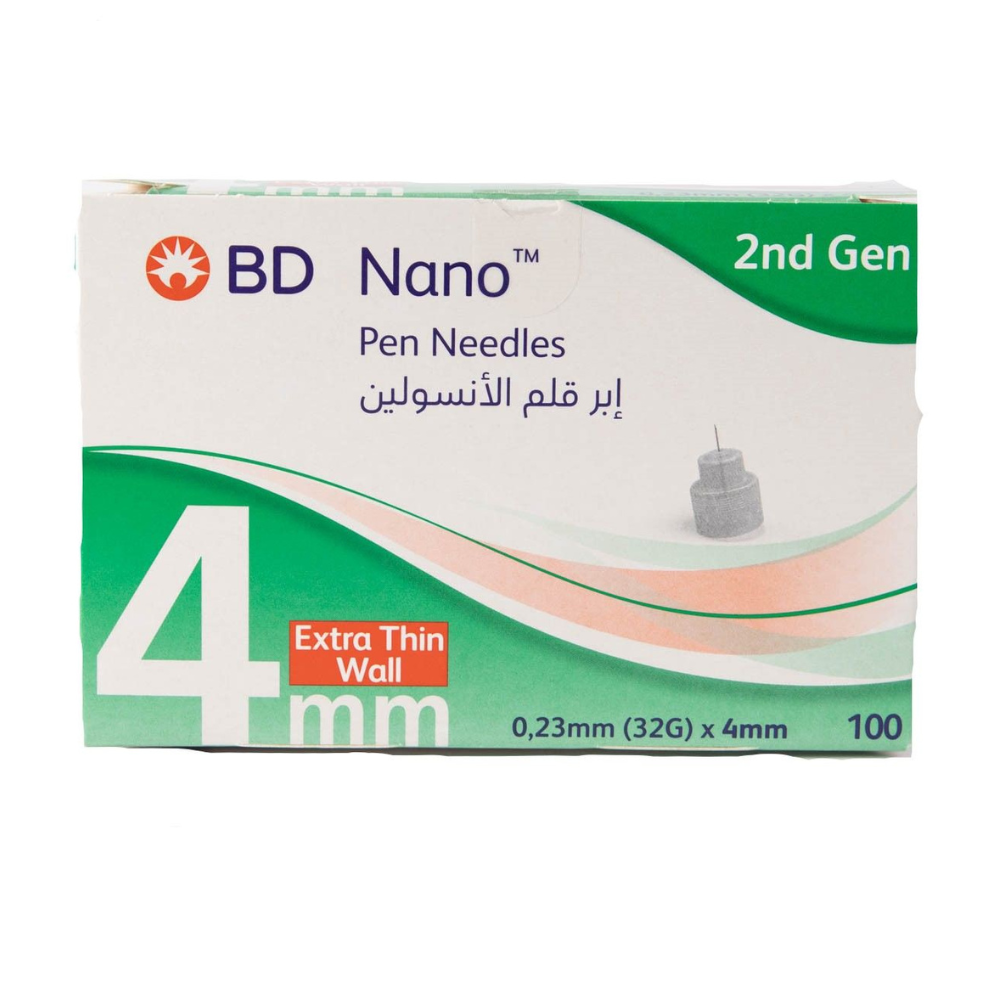 - تتميز إبرة القلم BD Nano ™ أيضًا برأس الإبرة PentaPoint ™ ذو الخمس حواف الحاصلة على براءة اختراع لحقن أقل إيلامًا مقارنة بإبر القلم الأخرى.