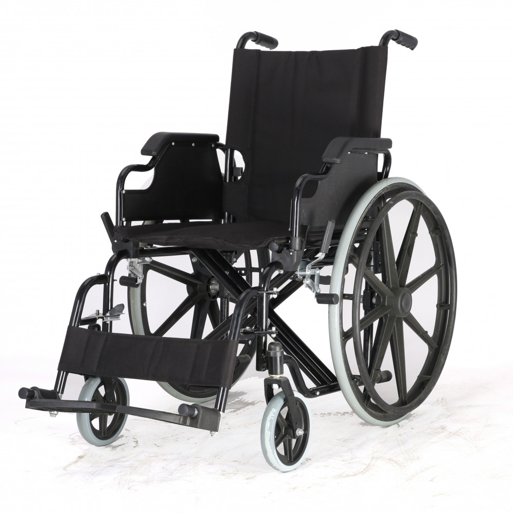 العجلات الأمامية والخلفية: زود الكرسي المتحرك 909B بعجلات أمامية من البولي فينيل كلوريد (PVC) بحجم 8 بوصة، توفر هذه العجلات تحكمًا ممتازًا في الحركة وسهولة التوجيه. العجلات الخلفية ماغ الصلبة بقياس 24 بوصة تضمن استقرار الكرسي وتدوم لفترة طويلة.